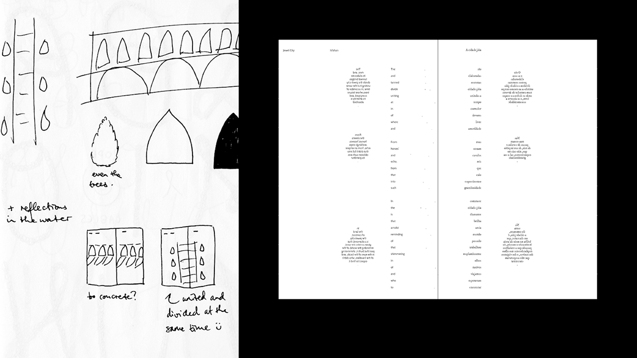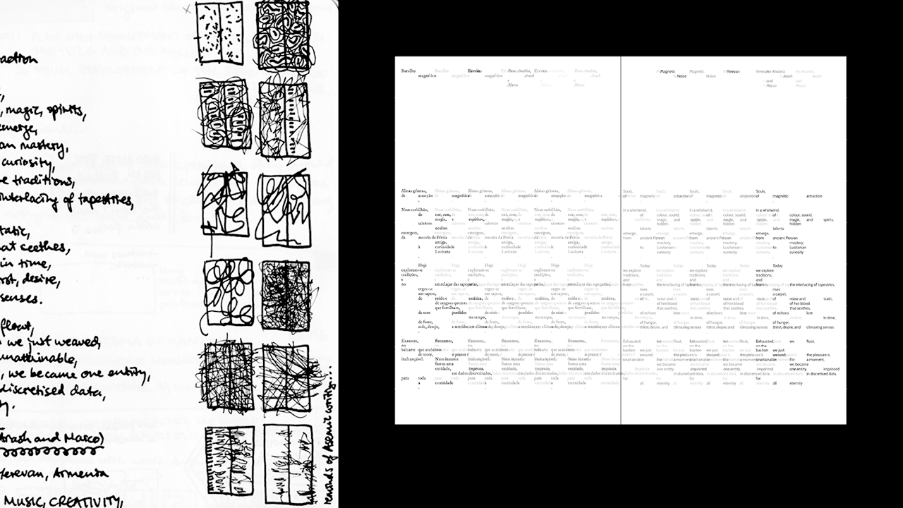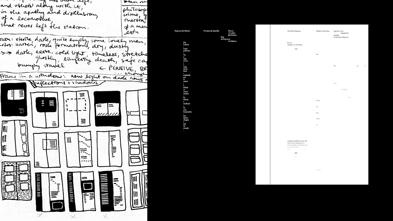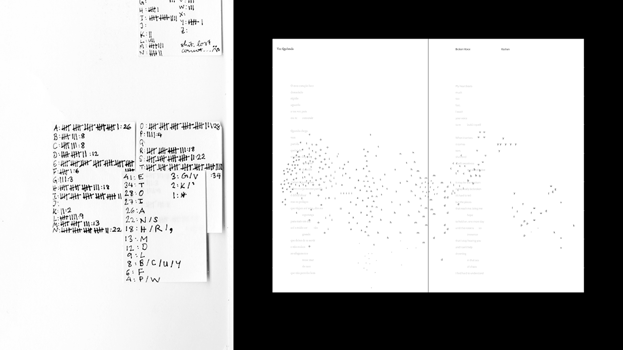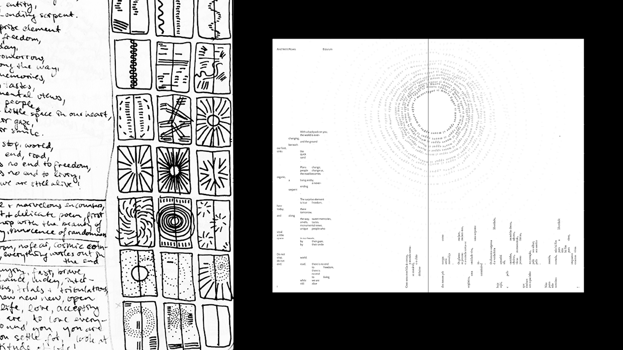 'Um Poema Errante / A Wandering Poem' is the printed collaboration between travelling poet Christian Marques and visual interpreter Angharad Hengyu Owen. A literary project unlike anything that has ever been published, it embodies a bi-disciplinary re-exploration of an eight-month journey from Europe, across the Middle East, to Asia: Undertaken by the author himself, crossing seven countries, covering roughly 11'500 kilometers by land, unearthing one poem a day. The result is a bilingual (English and Portuguese) collection of emotional imprints, where each poetic free-verse works hand in hand with its unique visualisation on paper, offering a multi-layered and inner-directed reading experience, and ultimately a voyage of sorts through printed words.