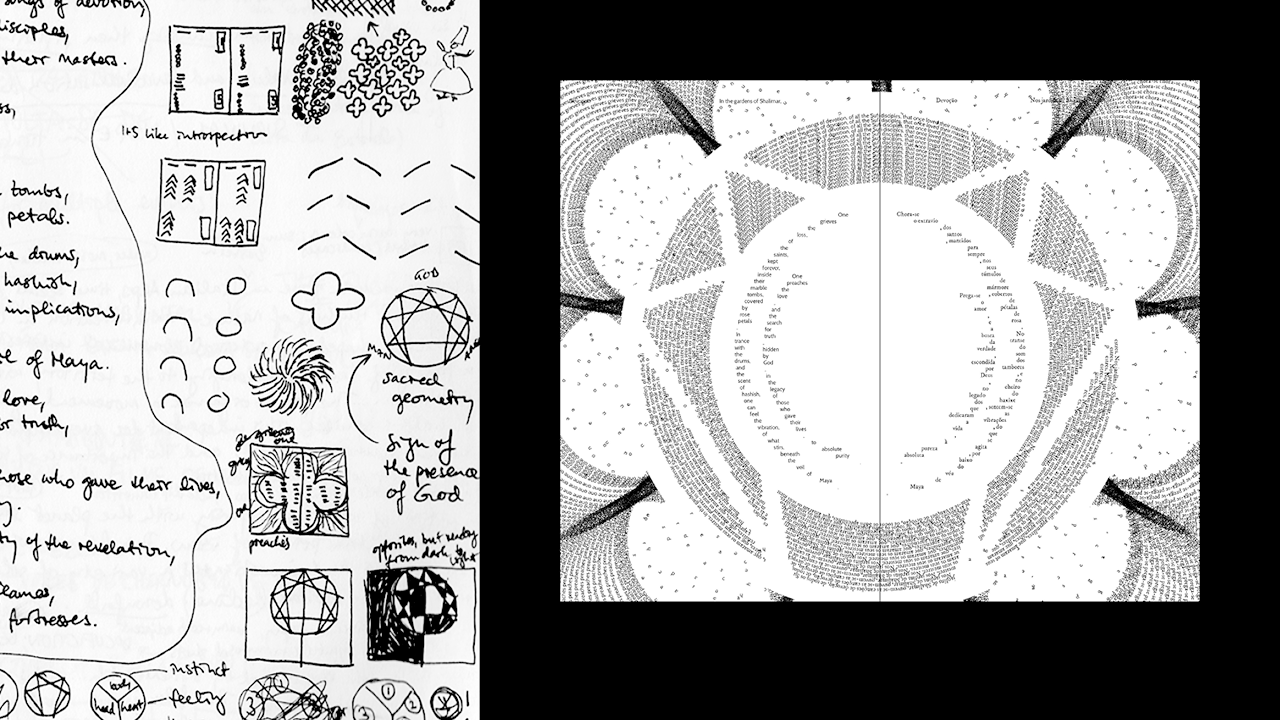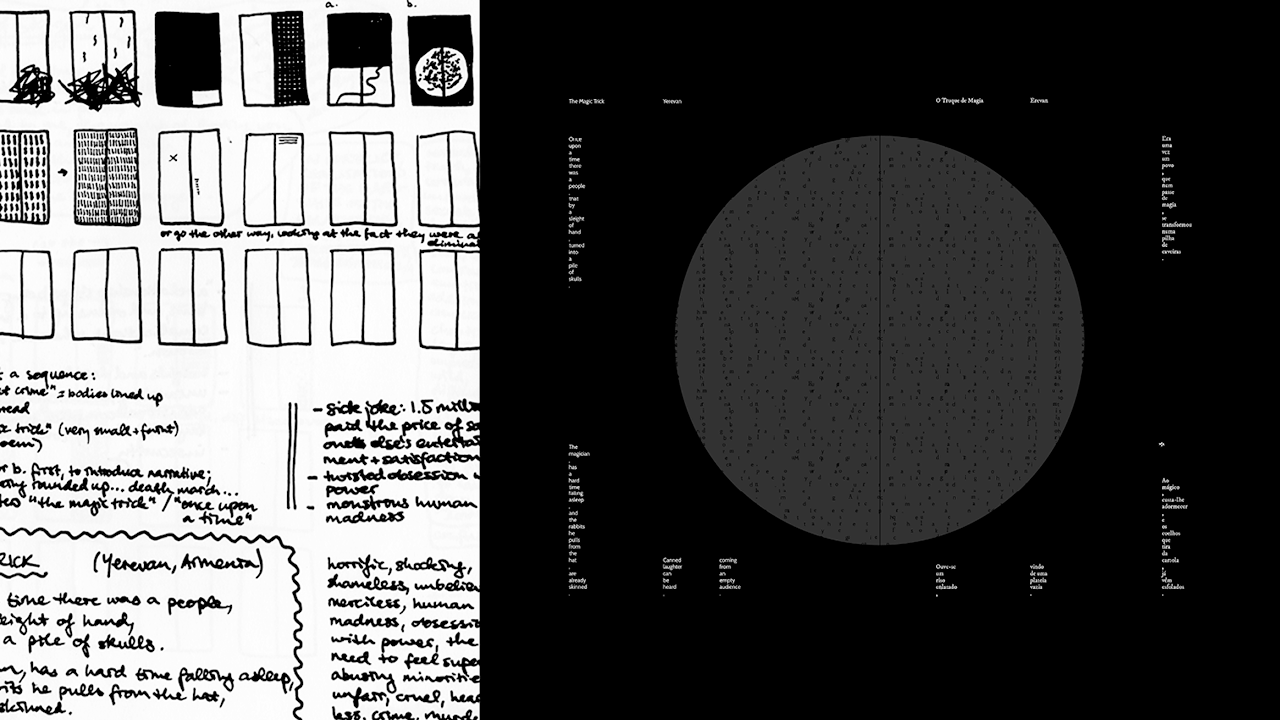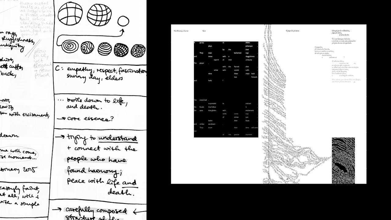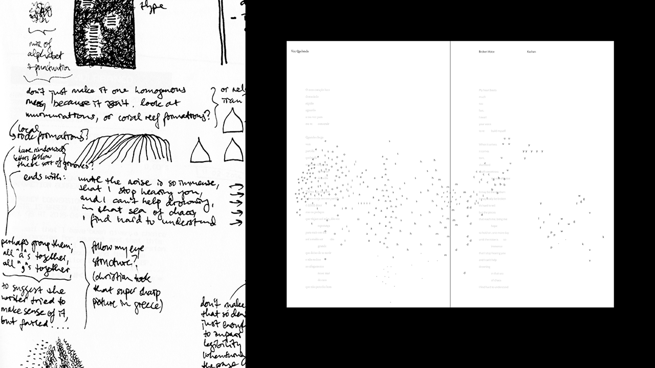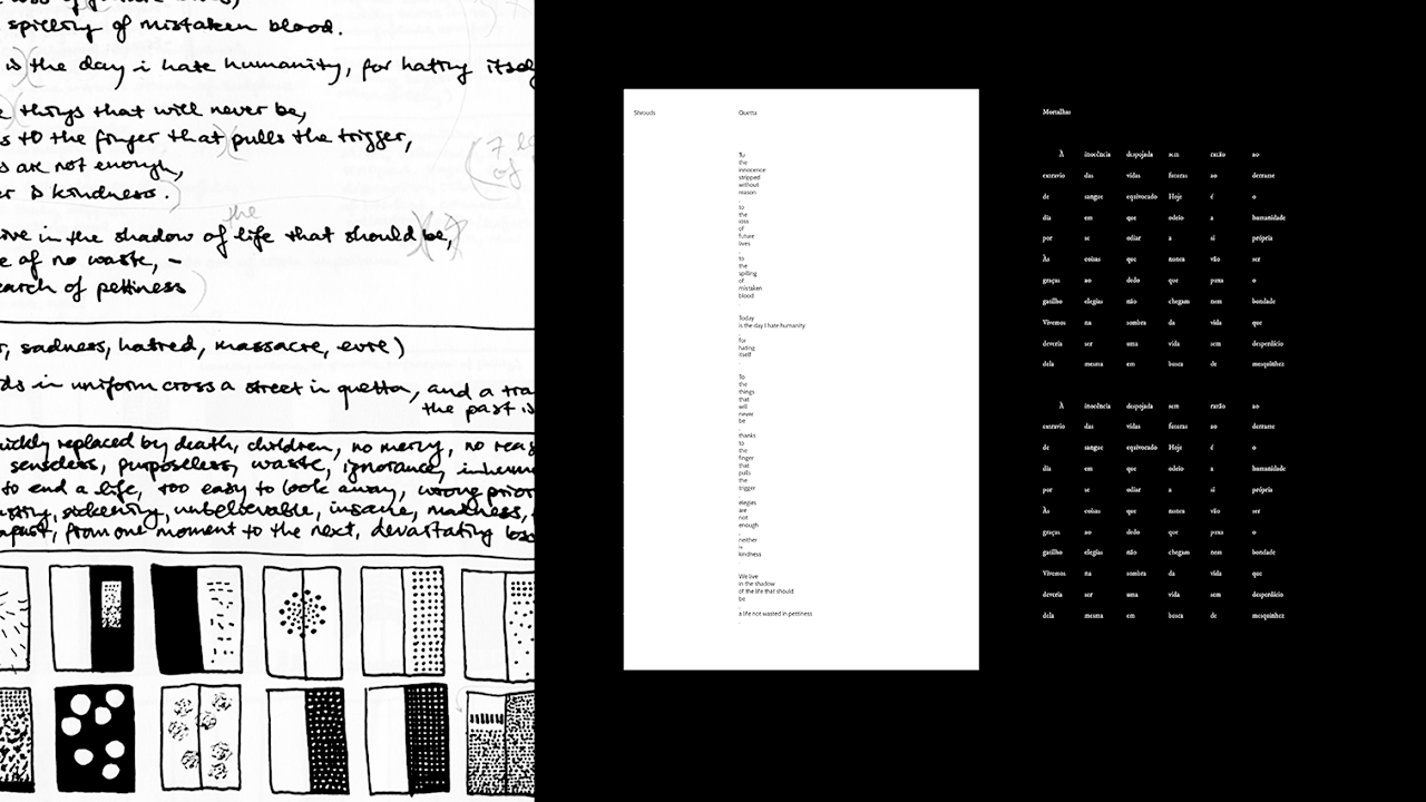 'Um Poema Errante / A Wandering Poem' is the printed collaboration between travelling poet Christian Marques and visual interpreter Angharad Hengyu Owen. A literary project unlike anything that has ever been published, it embodies a bi-disciplinary re-exploration of an eight-month journey from Europe, across the Middle East, to Asia: Undertaken by the author himself, crossing seven countries, covering roughly 11'500 kilometers by land, unearthing one poem a day. The result is a bilingual (English and Portuguese) collection of emotional imprints, where each poetic free-verse works hand in hand with its unique visualisation on paper, offering a multi-layered and inner-directed reading experience, and ultimately a voyage of sorts through printed words.